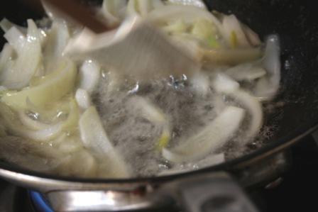 くし型に切ったたまねぎを弱火で炒める。