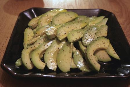 アボカドは、レモン、塩、胡椒、オリーブオイルでいただく。