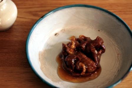前述したように牛肉には独特の獣臭があるので、甘辛の醤油味がいいと思う。