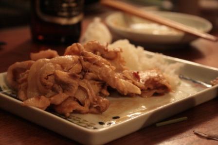 酒としょうゆをからめただけ。辛味大根をおろしたのでいただく。辛味大根がバラ肉の脂を流してくれるのでさっぱりと食べられる。