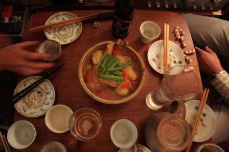 話題はあちこちに飛び、夜は更けてゆく。今回もまたたくさん食べて飲みました。準備チームの人、後片付け手伝ってくれた人、どうもありがとう。