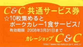 C&Cは1回食べるごとにサービス券をくれる(右図参照)。これを10枚ためるとポークカレーが一食分サービスになるシステムになっている。